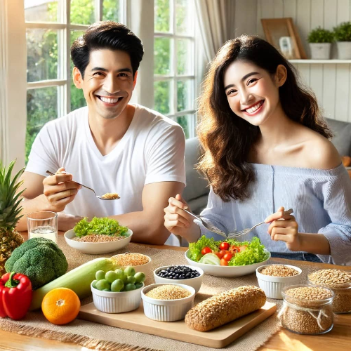 콩류와 견과류는 단백질과 건강한 지방을 포함하여 균형 잡힌 영양소를 제공합니다. 이는 탄수화물과 함께 섭취하면 혈당을 안정적으로 유지하고, 포만감을 오래 지속시키는 데 도움이 됩니다. 렌틸콩, 병아리콩, 아몬드, 호두 등을 식단에 포함시키는 것이 좋습니다.